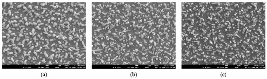 From the analysis of Figure 9, it can be seen that the number of lead whiskers per unit surface increases, and the whiskers themselves become thicker. After annealing at 800 °C for 1 h (Figure 7b), it can be seen that there are many small pores on the coating surface, holes are formed in the whisker walls, and the whiskers are empty inside. After annealing at 800 °C for 6 h (Figure 6c), it can be seen that the porosity of the coating between the whiskers increases, while the whisker shells remain unchanged. It is quite obvious that the porosity of the coating with an initial lead concentration of 49.5 at.% after annealing 800 °C 6 h is maximum.