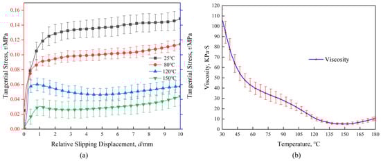 (a) Inter-ply slipping test results at different temperatures; (b) Viscosity-temperature curve of prepregs.