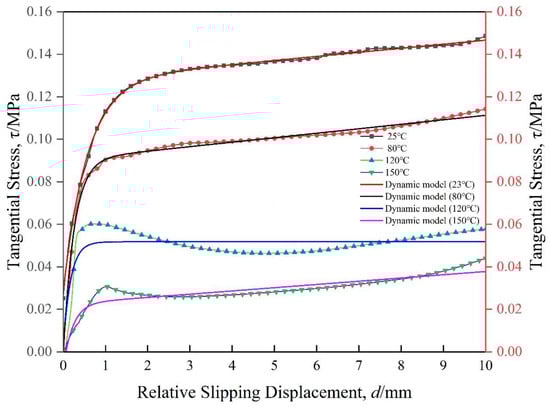 where the , , are slip stress (MPa) at different stage. The d is relative slipping displacement (mm). is the stress of yield point. and is the stress of hardening point. , and are parameters of models. The and are related to the viscosity of the resin (η) and relative slip rate (v). The is related to the interface friction coefficient and interface pressure.