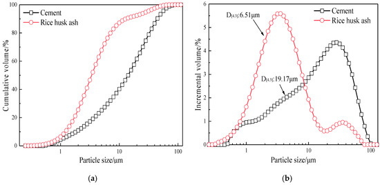 The (a) cumulative distribution and (b) incremental distribution of cement and RHA.