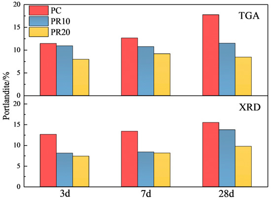 The contrast of Ca(OH)2 content in samples measured by XRD and TGA.