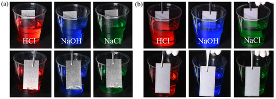 - Furthermore, the STASL demonstrated excellent anti-adhesion performance against acid and alkali salt solutions. The adhesion of both TC4 and STASL was simultaneously immersed in HCl solution (pH = 1), NaOH solution (pH = 14), and NaCl solution (3.5 wt%) for 1 min, after which the solutions were removed. The STASL exhibited minimal solution residue, whereas the TC4 surface displayed distinct droplets.