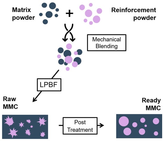 - Kim, M.-K.; Fang, Y.; Kim, J.; Kim, T.; Zhang, Y.; Jeong, W.; Suhr, J. Strategies and Outlook on Metal Matrix Composites Produced Using Laser Powder Bed Fusion: A Review. Metals 2023, 13, 1658. [Google Scholar] [CrossRef]