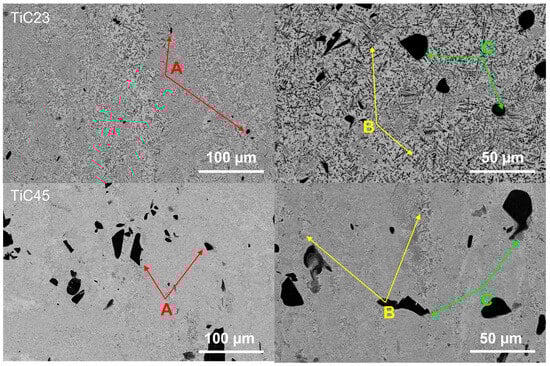 - Roger, J.; Gardiola, B.; Andrieux, J.; Viala, J.-C.; Dezellus, O. Synthesis of Ti matrix composites reinforced with TiC particles: Thermodynamic equilibrium and change in microstructure. J. Mater. Sci. 2016, 52, 4129–4141. Available online: https://link.springer.com/article/10.1007/s10853-016-0677-y (accessed on 24 November 2020). [CrossRef]