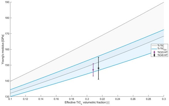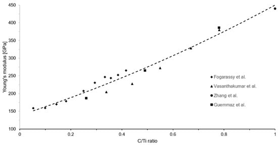 - The elastic modulus is not affected by the heat treatment. It is proposed that the decrease in TiC’s elastic modulus induced by the reduction in the C/Ti ratio is compensated by the increase in the TiCx volumetric fraction.