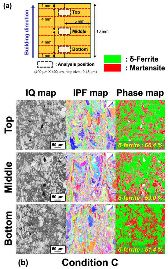 - Zhu, B.; Lin, J.; Lei, Y.; Zhang, Y.; Sun, Q.; Cheng, S. Additively manufactured δ-ferrite-free 410 stainless steel with desirable performance. Mater. Lett. 2021, 293, 129579. [Google Scholar] [CrossRef]