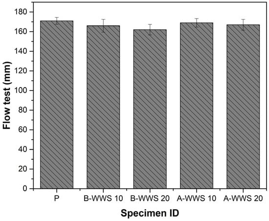 - The substitution of cement with pretreated wastewater sludge (A-WWS) maintained flow characteristics comparable to the control mixture, while untreated sludge (B-WWS) reduced workability due to coarser particles. Pretreated sludge also resulted in a shorter setting time, indicating improved reactivity, whereas untreated sludge caused significant delays in setting due to its lower reactivity.