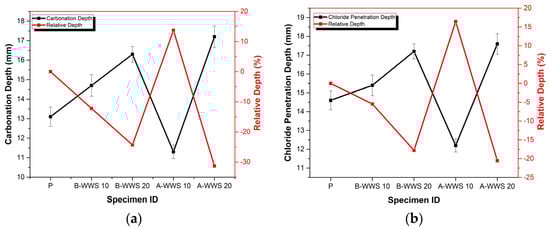 - The pretreated sludge samples (A-WWS) exhibited superior resistance to both carbonation and chloride penetration compared to untreated sludge. The 10% pretreated sample demonstrated optimal performance, reducing CO2 and chloride ion ingress due to a denser, less porous matrix created by the pretreatment process.