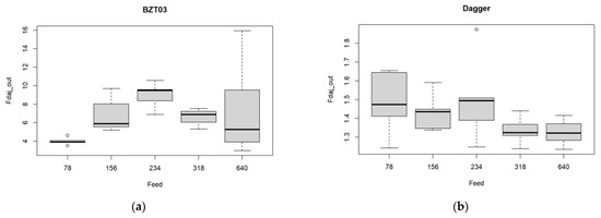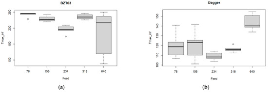 A similar approach was conducted regarding the feed rate. The corresponding boxplots are presented in Figure 9.