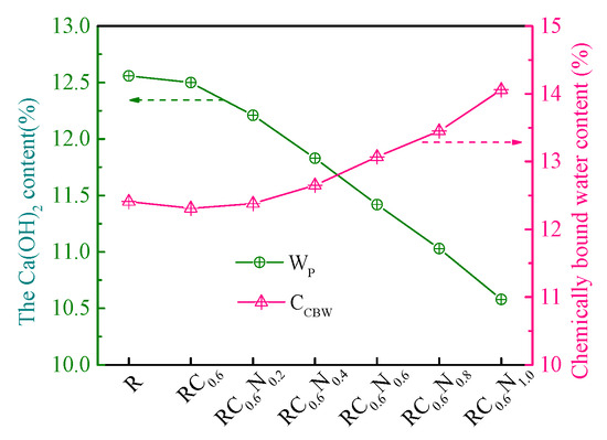 The content of Ca (OH)2 and chemically bound water in RAC.