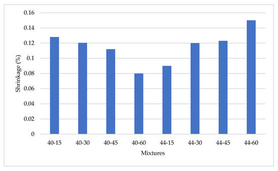 The 28-day shrinkage amounts of the mixtures are shown in Figure 8.