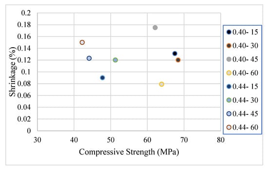 The relationship between compressive strength and shrinkage is given in Figure 9.