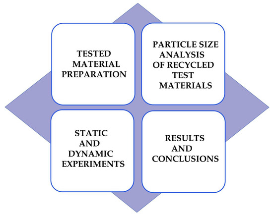 The experiments were carried out in the following order (Figure 1): the test materials were prepared (bentonite clay, stormwater); particle size analysis (sieve test, microscopy) was carried out on the test material (bentonite clay) to assess its suitability for the removal of pollutants; and static and dynamic experiments (leaching and column tests) were carried out to evaluate the efficiency of bentonite clay to retain residual chlorine and reduce stormwater pollution.