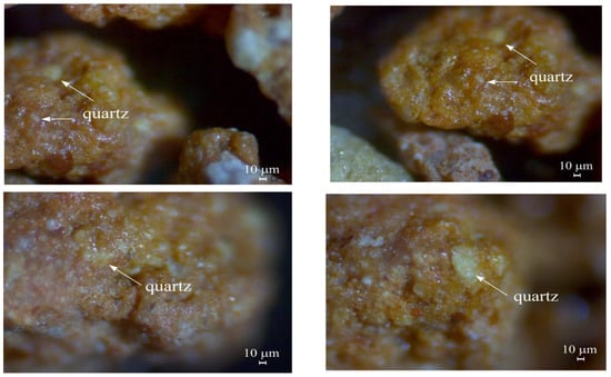 The experiments were carried out using waste bentonite clay. The particle size of the bentonite clay was evaluated using a sieve analysis test and microscopy. Bentonite clay belongs to the third group of clays, which are characterized by their high water absorption and swelling capacities. Due to these properties, bentonite clay is widely used in the construction sector, mainly for drilling and sealing, as well as a binder or adsorbent. Bentonite clay is an effective material for removing pollutants and is applied in stormwater treatments to retain contaminants and reduce water turbidity [35]. The experiments were carried out using dry granules of bentonite clay. Bentonite contains 40–50% SiO2, 20–30% Al2O3, 3–6% Fe2O3, and small amounts of CaO, Na2O, MgO, and K2O.