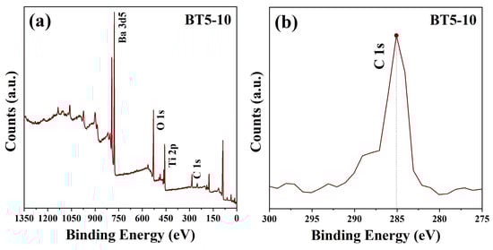 X-ray photoelectron spectroscopy (XPS) was conducted on the BT5-10 sample to achieve a more nuanced understanding of its elemental composition. The XPS results of BT5-10 are shown in Figure 9.