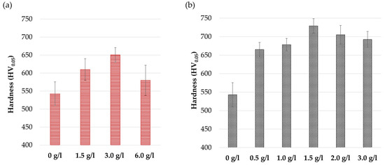 - Karthikeyan, S.; Vijayaraghavan, L. Influence of Nano Al2O3 Particles on the Adhesion, Hardness and Wear Resistance of Electroless NiP Coatings. Int. J. Mater. Mech. Manuf. 2015, 4, 106–110. [Google Scholar] [CrossRef]