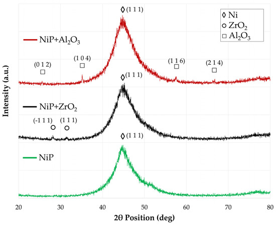 | Ni-P/ZrO2 | Ni | Fm-3m | 3.5238 | 1.85 | 42 |