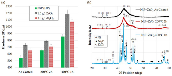 - Gay, P.A.; Limat, J.M.; Steinmann, P.A.; Pagetti, J. Characterization and Mechanical Properties of Electroless NiP–ZrO2 Coatings. Surf. Coat. Technol. 2007, 202, 1167–1171. [Google Scholar] [CrossRef]