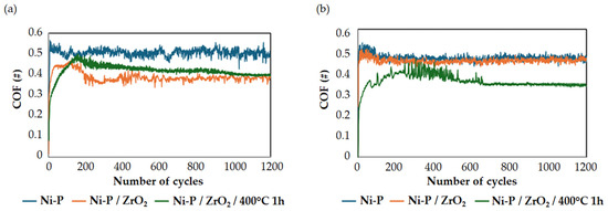 | Ni-P/ZrO2 | 0.39 ± 0.03 | 0.45 ± 0.01 |