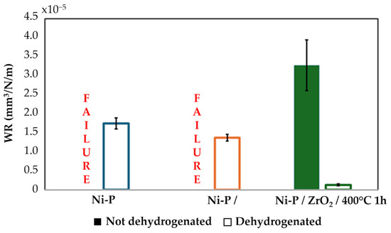 | Ni-P/ZrO2/400 °C 1 h | 0.42 ± 0.03 | 0.36 ± 0.03 |