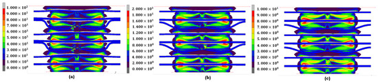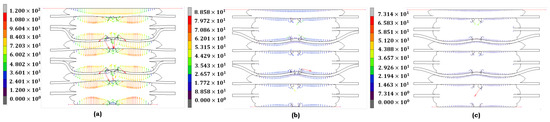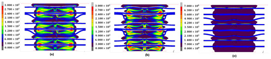 where and are material parameters, and N represents the number of terms in the series. The choice of and enables the Ogden model to represent complex material behaviors across various strain levels, but it requires significant computational resources. In our study, the Ogden model’s parameters are tuned to capture the effects of aging, with variations in reflecting stiffness changes in materials exposed to harsh environments. This model is particularly effective for simulating the severe deformation of PEMFC gasket materials under combined thermal and chemical stresses [22,23].