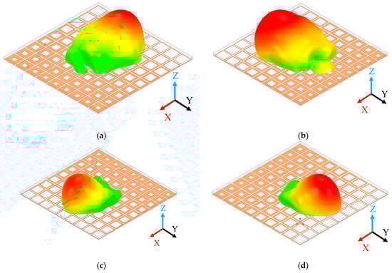 As illustrated in Figure 9, the PGPRM concentrates and deflects the emitted electric field, achieving high gain and significant beam deflection, which is consistent with prior expectations. At 9 GHz, the electric field of the PGPRM is predominantly distributed along the negative x-axis, corresponding to the direction of wide-angle beam deflection.