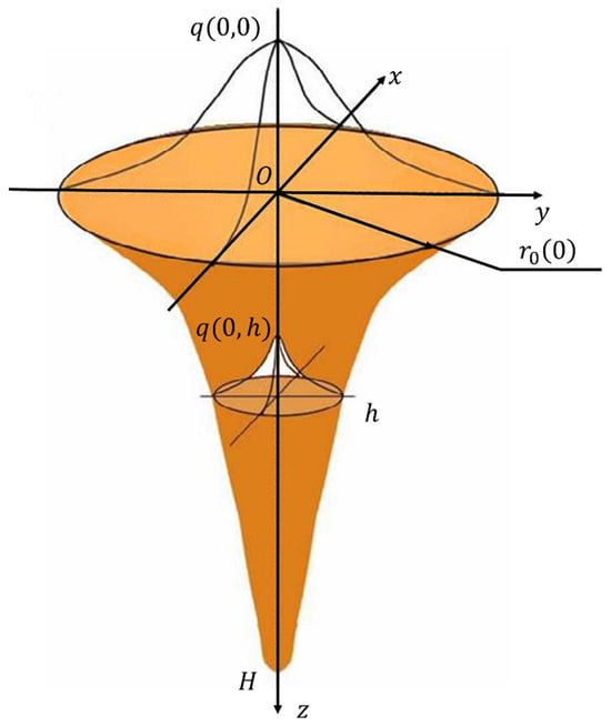 Assuming that the radius of the heat source on the incident surface of the Gaussian body heat source laser is r0 and the depth of the heat source is H, the heat flow distribution function is as follows [31]:
