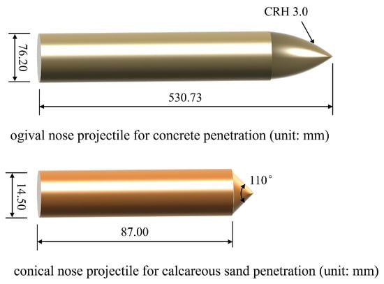 Figure 10. In this paper, the Russian-made BETAR-25 anti-runway cluster munition was selected for numerical simulation, with ogival nose projectile body with a total weight of 9–13 kg, a diameter of 76 mm, 3.0 CRH, and an overall length of 480 mm [