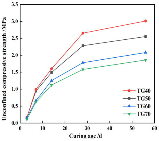 Figure 11. CLSM strength variation characteristics of different TG content.