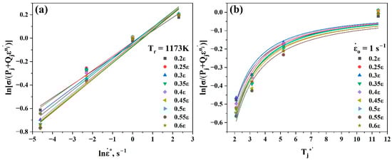 Using Equation (11), the Arrhenius-type constitutive formula can be recast as follows: