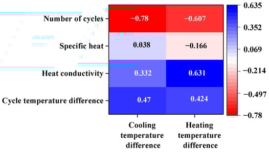 - Pearson correlation analysis results showed that the cycle temperature difference and the number of cycles significantly affected the cooling and heating temperature differences.