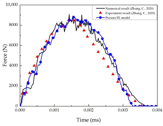 Comparison of force–time graph for verifying the low-velocity impact simulation.