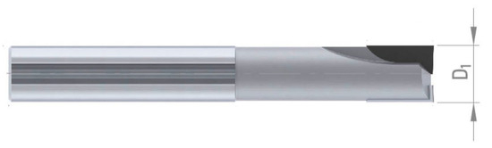PCD end mill cutter (diameter D1 = 10 mm).