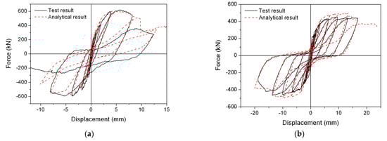 The analytical results for shear force capacity and ductility for both specimens are compared to those of the experimental outcomes, as shown in Table 4.