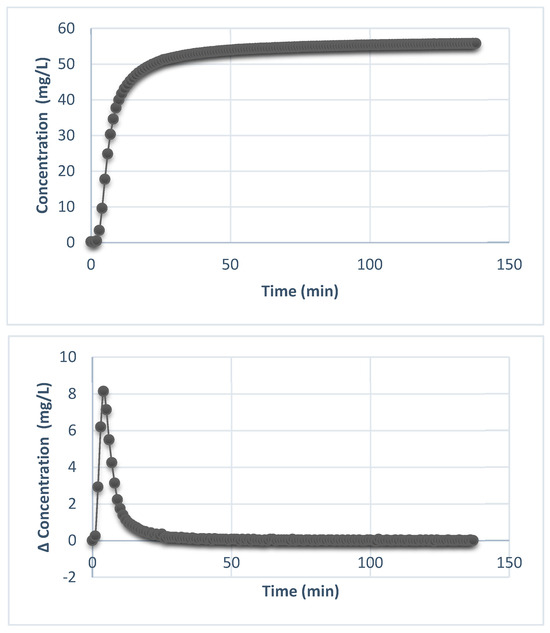 The variation of the micafungin concentration over time and the variation in the incremental release of micafungin (the difference in concentration vs. time).