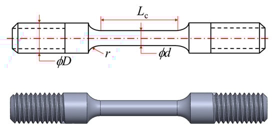 Schematic diagram of smooth tensile specimen (r = 3 mm; ϕd = 3 mm; ϕD = 6 mm; Lc = 15 mm).