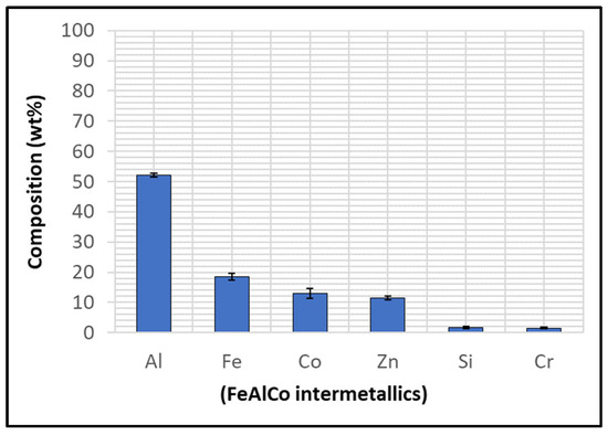 EDS phase elemental analysis of the intermetallic compounds on the WC-Co coating shown in Figure 9.