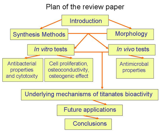 The next step in the development of antibacterial materials was to introduce multicomponent oxides (for example, titanates) in addition to the simple ones like titania, zirconia, and zinc oxide. Such multicomponent compounds contain in their unit cell not only oxygen but also the ions of two or more different metals. These multicomponent oxides aim to address the shortcomings of simpler oxides and recent challenges in biomedical materials. This short review is devoted mainly to the synthesis, structure, and properties of various titanates (see Figure 1). In particular, the titanates on the titanium substrate can be produced with simple chemical treatments, ensuring good adhesion. Moreover, the titanates possess piezoelectric properties allowing antibacterial mechanisms additional to photocatalysis.