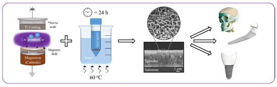 The pioneering method of creating nanoporous titanate structures on diverse biomaterial surfaces for enhancing bioactivity and antibacterial properties. * marks the comment on the substrate and coating. Reprinted with permission from Ref. [25]. Copyright 2020 Elsevier.