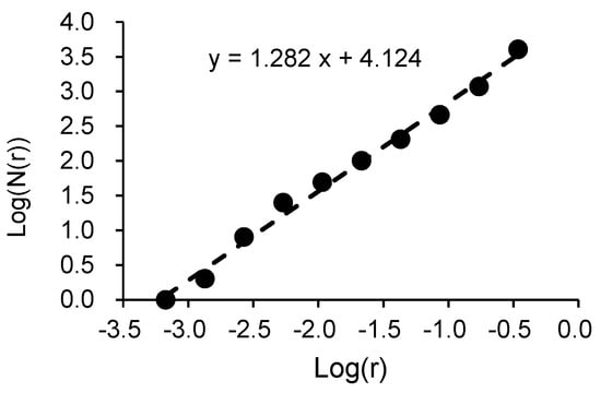 The term “fractal” or “mono-fractal” was first introduced by Mandelbrot [39] to indicate objects whose complex geometry cannot be characterized by an integer Euclidean dimension. A fractal dimension (FD) is an index for characterizing fractal patterns by quantifying their complexity as a ratio of the change in detail to the change in scale. In addition to their application in the field of structural engineering [31,32,33,34,35], fractal dimensions are also used in the medical field [40,41,42] and in geosciences [43,44,45].