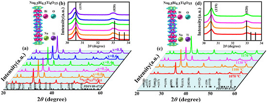 Figure 1c shows the XRD patterns of NBLMTC-x ceramics sintered at various temperatures for