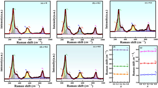 Figure 9f). It is shown that the introduction of Ce ions can induce more ferroelectric domain flipping, which is helpful to the flipping of polarization and thus improves the ferroelectric and piezoelectric properties. In general, tetraval distortion and distortion will help to obtain fuller polarization, and fuller polarization will help to reduce the unstable non-180° domains in the ceramic, which will help to improve the thermal stability of the ceramic. The dependence of the remanent polarisation (