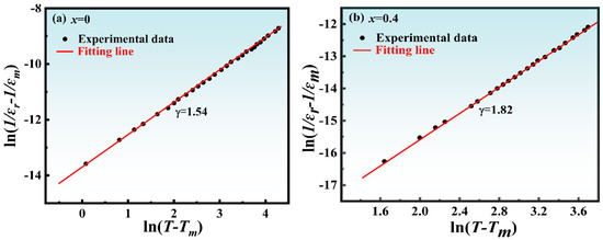 To validate the ferroelectric type of NBLMTC-x. Using Equation (3), fitting the variation of ln(1/
