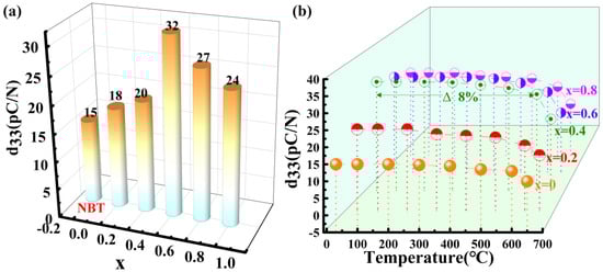 d33 values at 25 °C~600 °C. In the entire temperature range, the