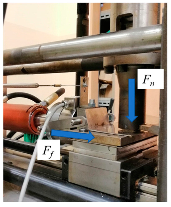 The rye-wheat straw with parameters S = 10 mm and M = 10% was densified under a pressure of 15 MPa by applying an appropriate force Fn in the densification sleeve. Afterwards, a steel plate was moved relative to the densified sample and the friction force Ff was measured using an HBM force sensor (HBK Hottinger Brüel and Kjaer Company, Darmstadt, Germany). Figure 9 illustrates an example of the variation in the friction force Ff as a function of the displacement of the piston in the actuator, which moves the steel plate relative to the densified straw sample.