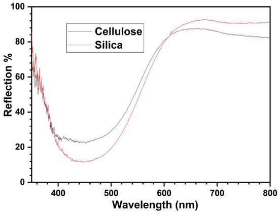 Different titanyl-ionic liquid solutions with acid were exposed to liquid H2O2 and then were deposited on various substrates (silicon- and cellulose-based test strips), and their reflected spectra were acquired using a spectrometer as shown in Figure 3. The data were collected using a spectrometer with sampling points from 350 to 800 nm and a sampling contact probe consisting of a halogen lamp and a collecting fiber as the input.