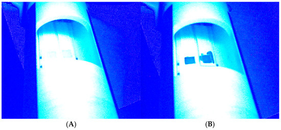Reflected images of thin film (A) before and (B) after peroxide exposure. The thin film was exposed to a hydrogen peroxide vapor concentration of 30.9 ppm for 1 h.