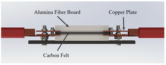 To fabricate the ceramic bulks with the composition of (Y0.3Gd0.3Yb0.4)4Hf3O12, oxide powders (Y2O3, Gd2O3, Yb2O3, and HfO2, 99.9%, Beijing HWRK Chen Co., Ltd., Beijing, China) were preheated at 800 °C for 2 h to eliminate crystal water. The powders were then weighted according to the molar ratio, followed by ball-milling at 400 rpm for 15 h. The subsequent slurry was dried and passed through a 200-mesh sieve to obtain the fine YGYbH powder. And 0.5 g of the mixed powder was weighed and pressed by cold isostatic pressing to generate the green ceramic bulks (Φ15 mm × 0.5 mm) [20]. The mid-entropy ceramic YGYbH was subsequently prepared using UHS technology, with a schematic illustration of the UHS equipment shown in Figure 1 [7]. Detailed sintering densification and operation procedures can be found in our previous study [20].