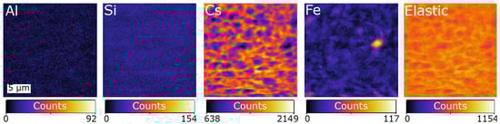 - Ryan, C.; Laird, J.; Fisher, L.; Kirkham, R.; Moorhead, G. Improved dynamic analysis method for quantitative PIXE and SXRF element imaging of complex materials. Nucl. Instrum. Methods Phys. Res. Sect. B Beam Interact. Mater. At. 2015, 363, 42–47. [Google Scholar] [CrossRef]