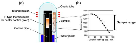 Schematic view of the furnace used for graded temperature heat treatments (a) and its temperature distribution (b).